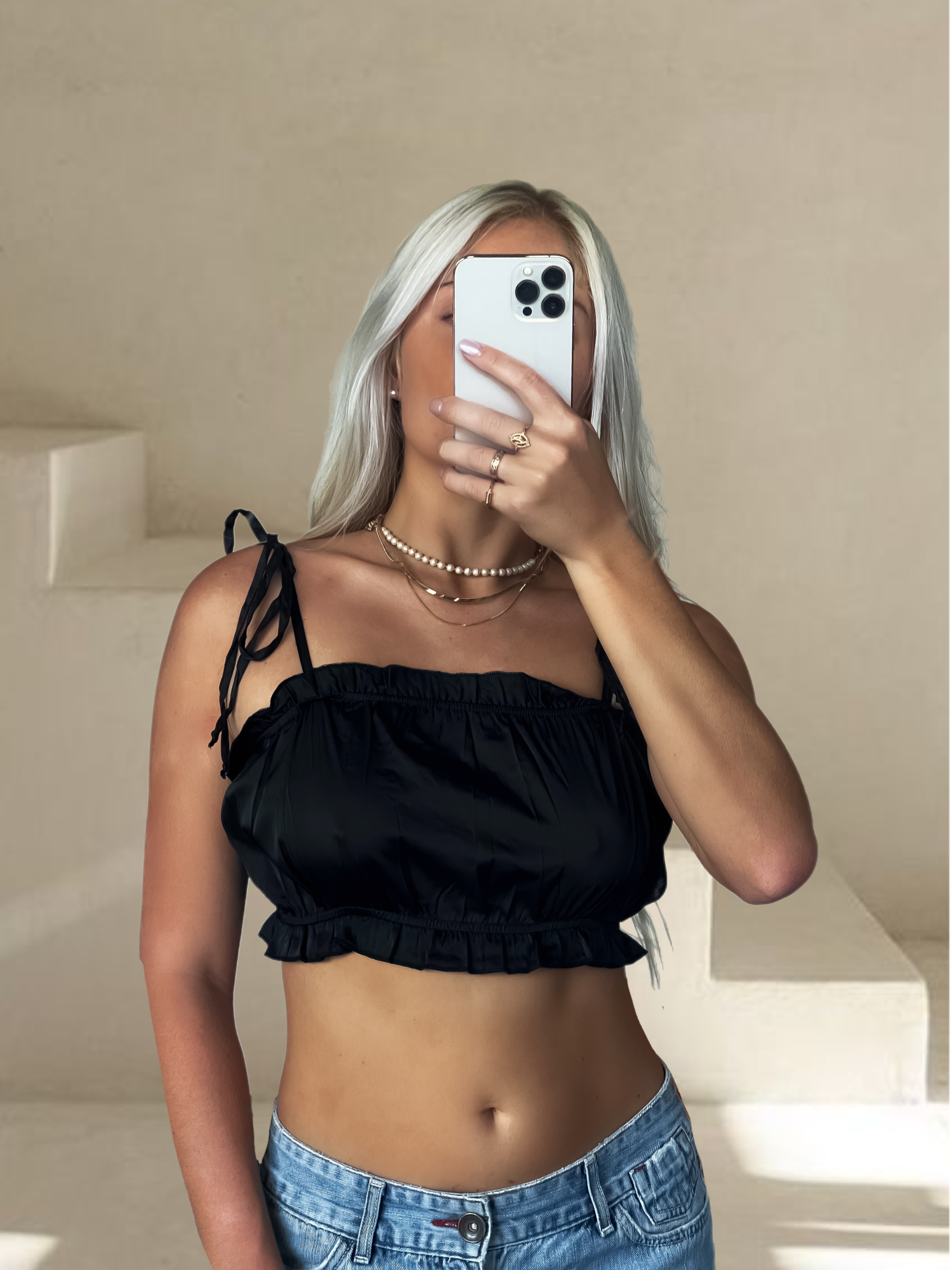 Give em bad girl vibes in this crop that has tie straps and a cropped fit.